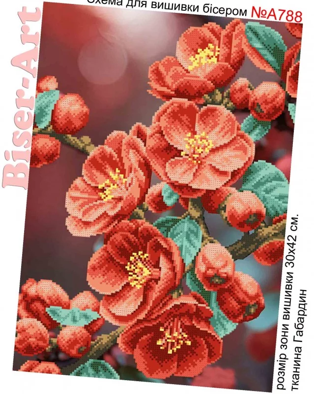 Схема під вишивку бісером. Друк на габардині. Розмір 30х42 см. До схеми додається список рекомендованих кольорів бісеру.
