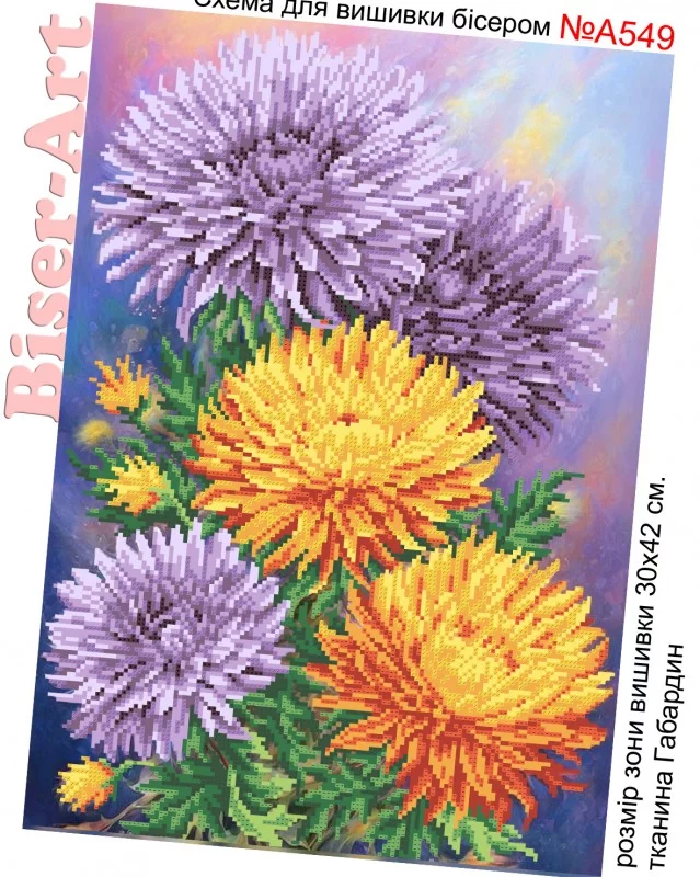 Схема під вишивку бісером. Друк на габардині. Розмір 30х42 см. До схеми додається список рекомендованих кольорів бісеру.