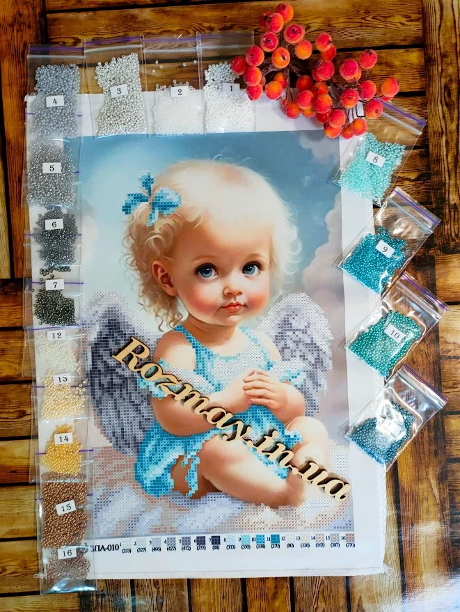 Схема під вишивку бісером. Друк на атласі. До схеми додається список рекомендованих кольорів бісеру.