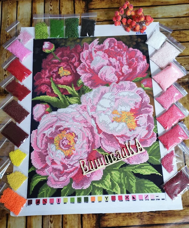 Схема під вишивку бісером. Друк на габардині. Розмір 30х39 см. До схеми додається список рекомендованих кольорів бісеру.