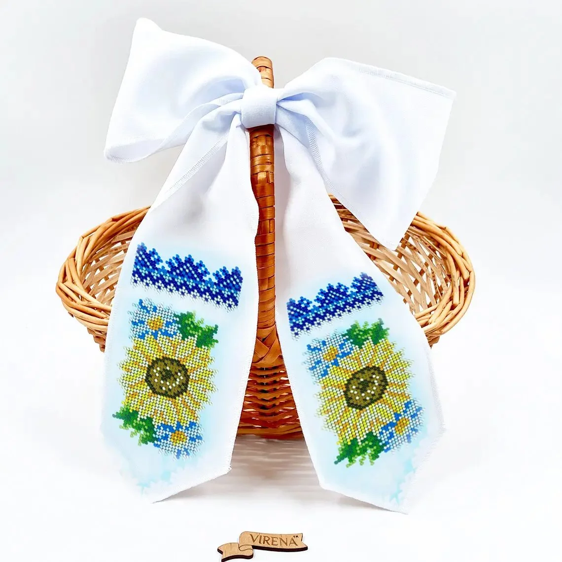 Зрізи банту обметані. Малюнок водостійкий. Схема чітка з насиченими кольорами та високою якістю друку.