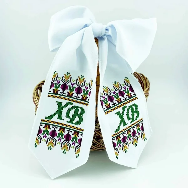 Зрізи банту обметані. Малюнок водостійкий. Схема чітка з насиченими кольорами та високою якістю друку.