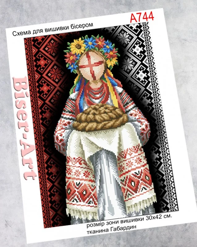 Схема під вишивку бісером. Друк на габардині. Розмір 30х42 см. До схеми додається список рекомендованих кольорів бісеру.