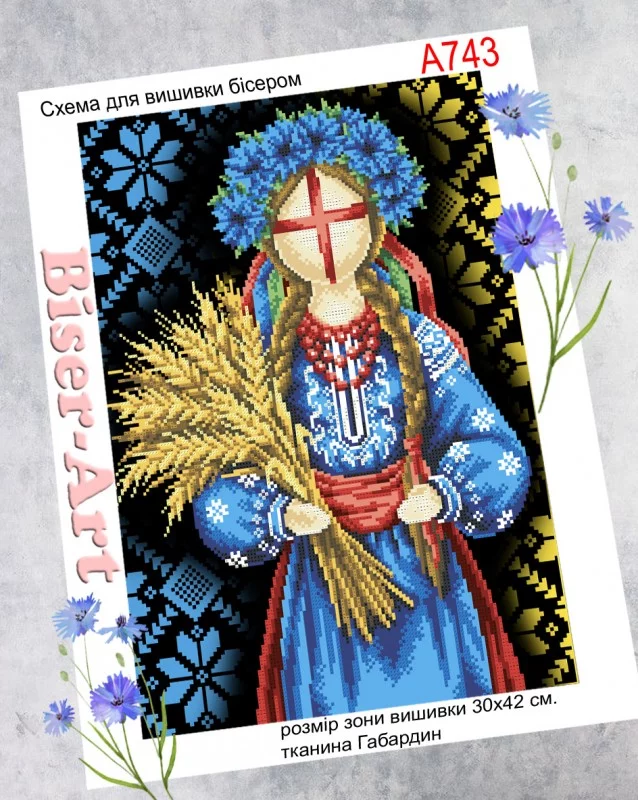 Схема під вишивку бісером. Друк на габардині. Розмір 30х40 см. До схеми додається список рекомендованих кольорів бісеру.