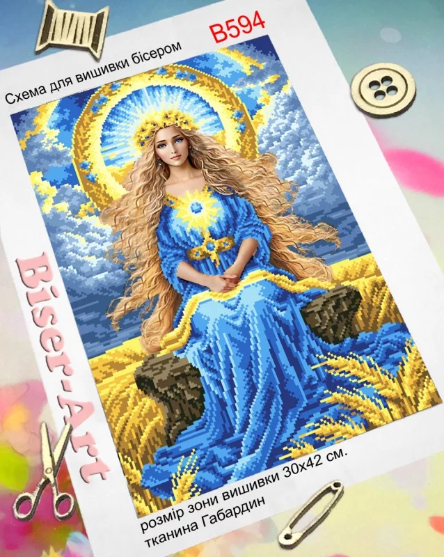 Схема під вишивку бісером. Друк на габардині. Розмір 30х42 см. До схеми додається список рекомендованих кольорів бісеру.