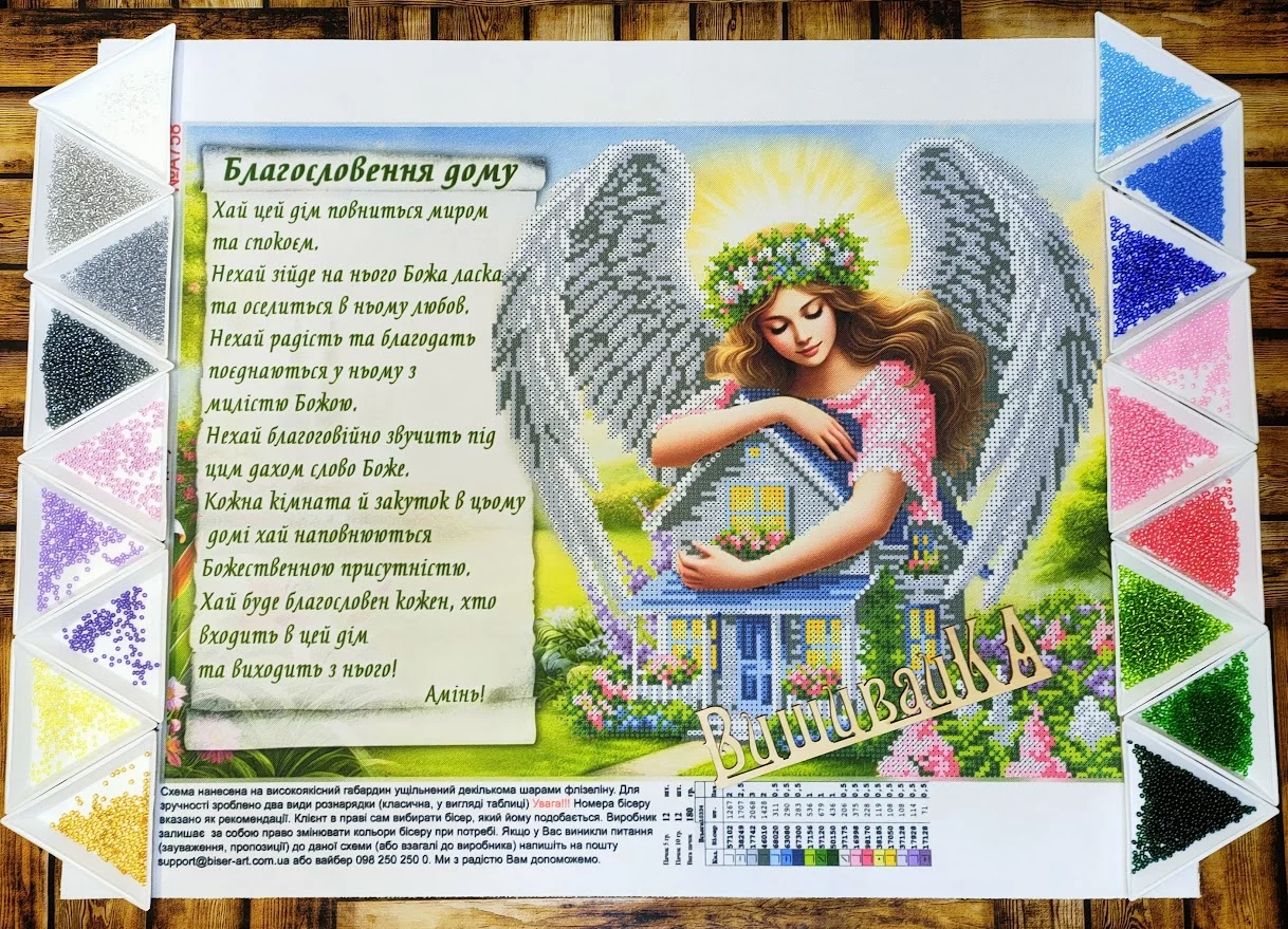Схема під вишивку бісером. Друк на габардині. Розмір 30х42 см. До схеми додається список рекомендованих кольорів бісеру.