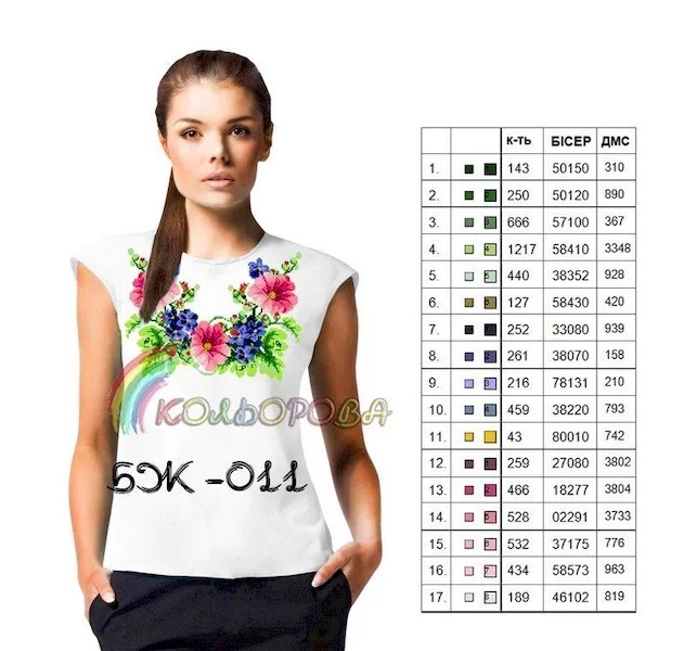 - титулка-ключ з рекомендованими кольорами бісеру Preciosa або муліне DMC та їх кількістю.