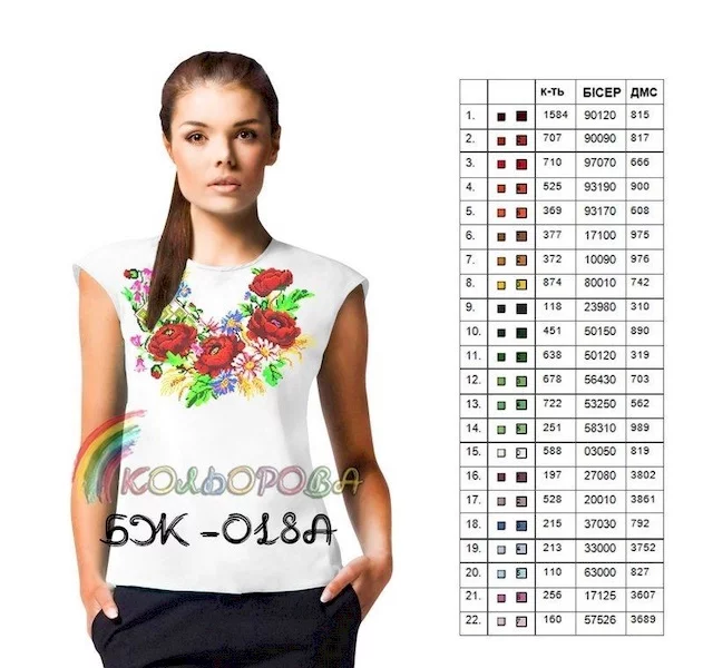 - титулка-ключ з рекомендованими кольорами бісеру Preciosa або муліне DMC та їх кількістю.