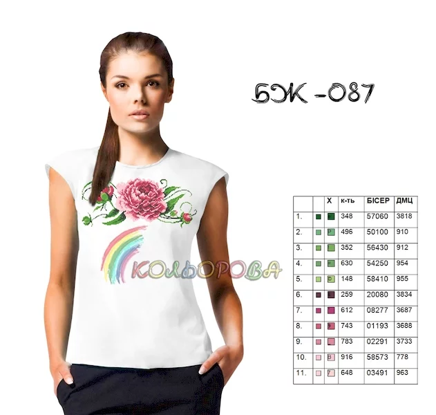 - титулка-ключ з рекомендованими кольорами бісеру Preciosa або муліне DMC та їх кількістю.