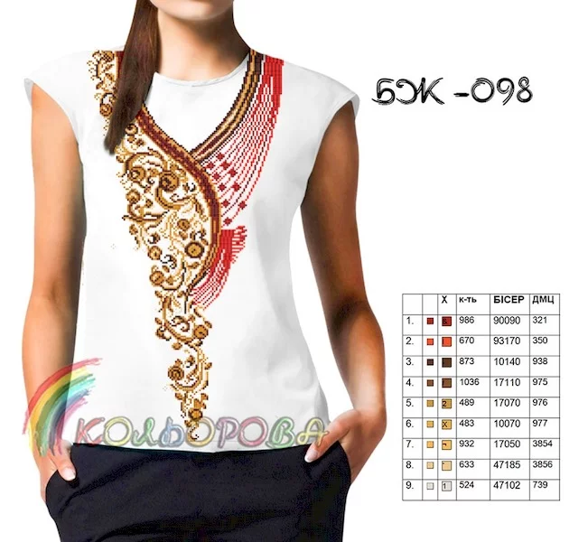- титулка-ключ з рекомендованими кольорами бісеру Preciosa або муліне DMC та їх кількістю.