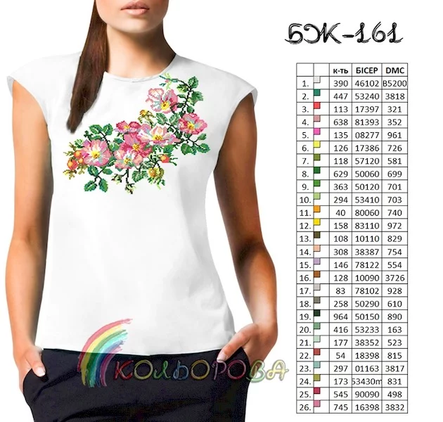 - титулка-ключ з рекомендованими кольорами бісеру Preciosa або муліне DMC та їх кількістю.