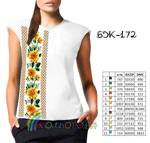 - титулка-ключ з рекомендованими кольорами бісеру Preciosa або муліне DMC та їх кількістю.
