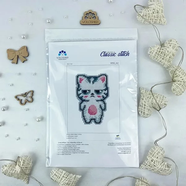 Брелок для вишивки хрестиком на пластиковій канві "Кіт", VPC_007