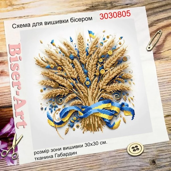 Схема під вишивку бісером. Друк на габадині. Розмір 30х30 см. До схеми додається список рекомендованих кольорів.