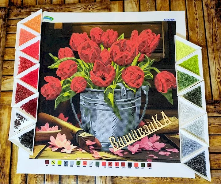 Схема під вишивку бісером. Друк на габардині. Розмір 35х35 см. До схеми додається список рекомендованих кольорів бісеру.