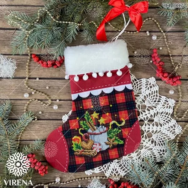 Основна тканина габардин, проклеєний флізеліном. Чобіток оздоблений штучним хутром з помпонами. Чобіток повністю зшитий і не потребує додаткової роботи по зшиванню. Малюнок водостійкий. Схема чітка з насиченими кольорами та високою якістю друку.