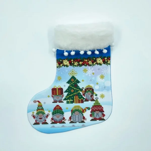 Основна тканина габардин, проклеєний флізеліном. Чобіток оздоблений штучним хутром з помпонами. Чобіток повністю зшитий і не потребує додаткової роботи по зшиванню. Малюнок водостійкий. Схема чітка з насиченими кольорами та високою якістю друку.