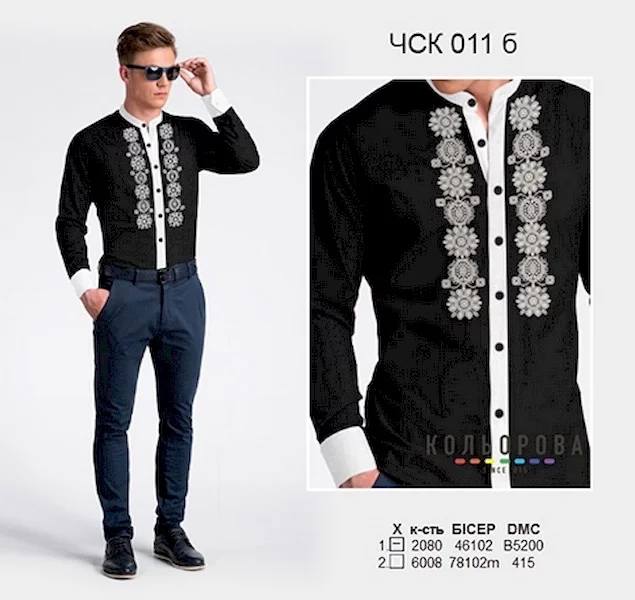 - на чорній (темній) тканині малюнок не наноситься. Малюнок друкується на водорозчинному флізеліні, який додається у комплект. Ціна заготовки не змінюється, але вишивати менш зручно.