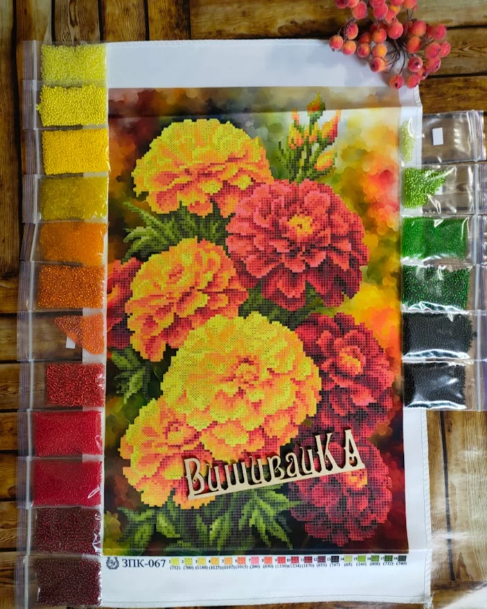 Схема під вишивку бісером. Друк на аталсі. Розмір 25х40 см. До схеми додається список рекомендованих кольорів бісеру.