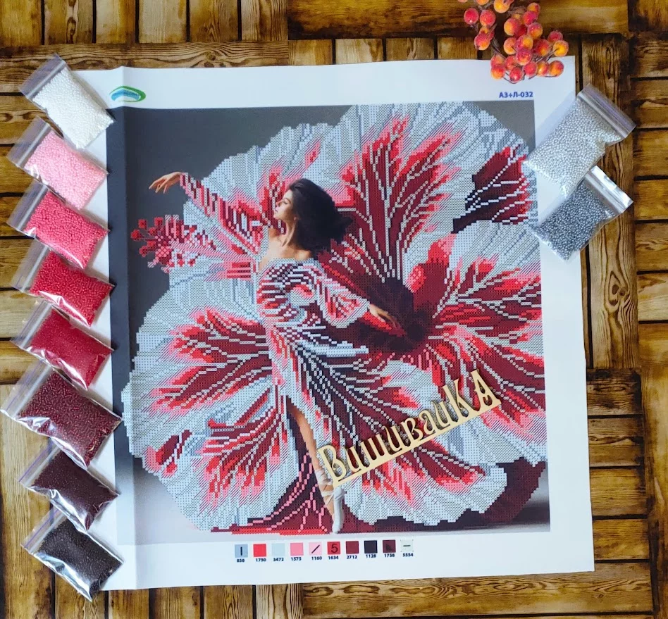 Схема під вишивку бісером. Друк на габардині. Розмір 35х35 см. До схеми додається список рекомендованих кольорів бісеру.