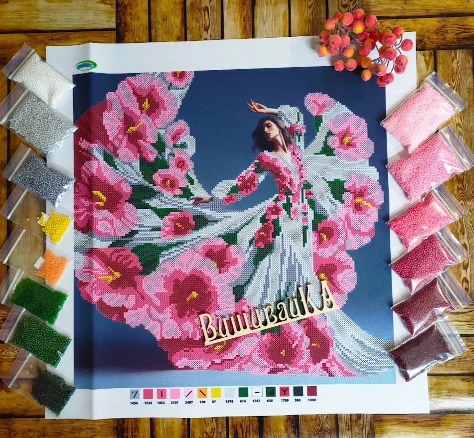 Схема під вишивку бісером. Друк на габардині. Розмір 35х35 см. До схеми додається список рекомендованих кольорів бісеру.