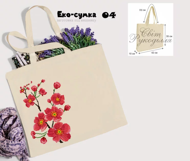 Пошита заготовка під вишивку еко-торбинки. Матеріал домоткане-льон. Розміри заготовки 42х35х10 см. Довжина ручки 60 см