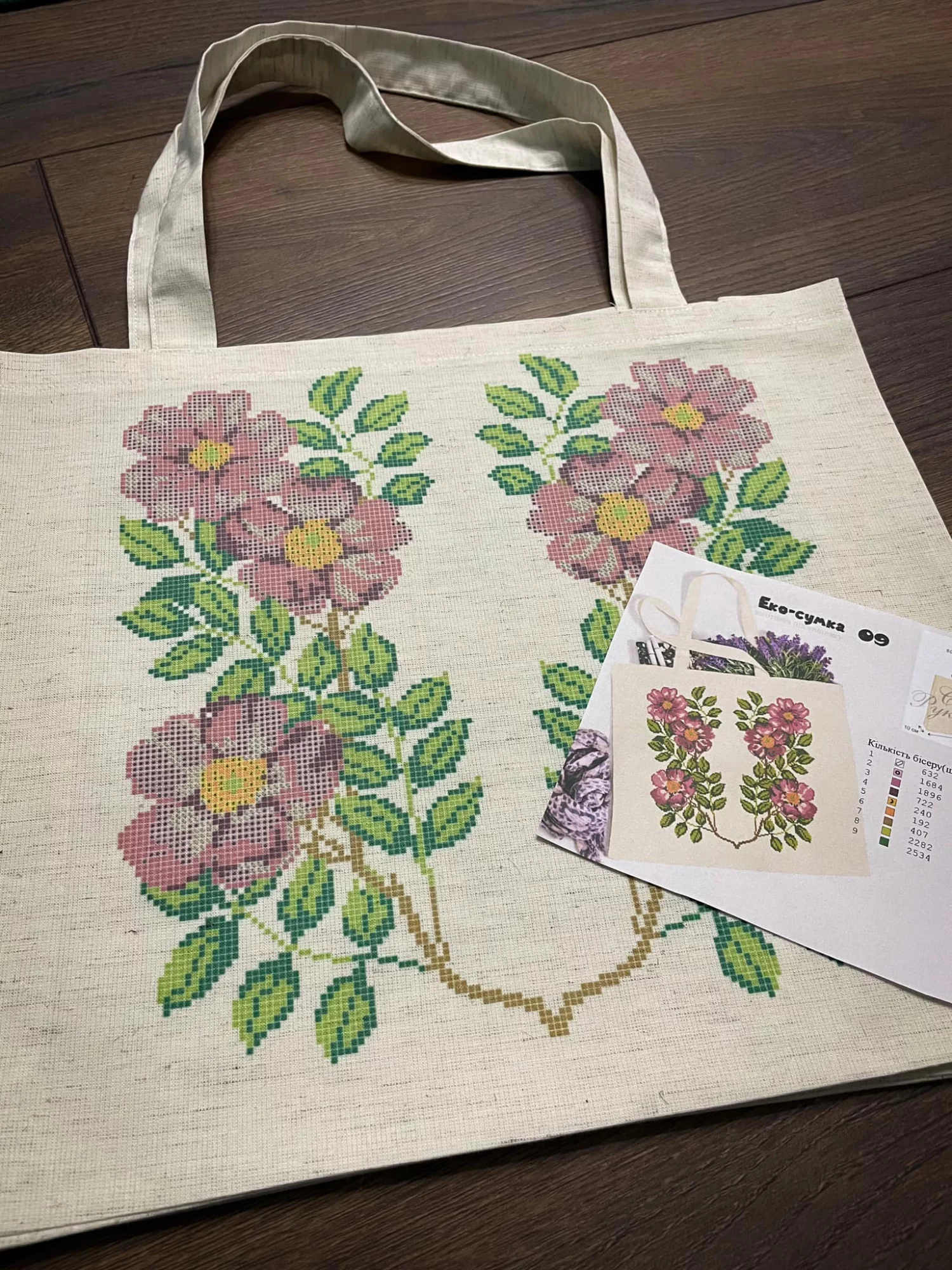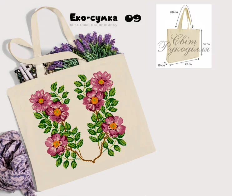 Пошита заготовка під вишивку еко-торбинки. Матеріал домоткане-льон. Розміри заготовки 42х35х10 см. Довжина ручки 60 см