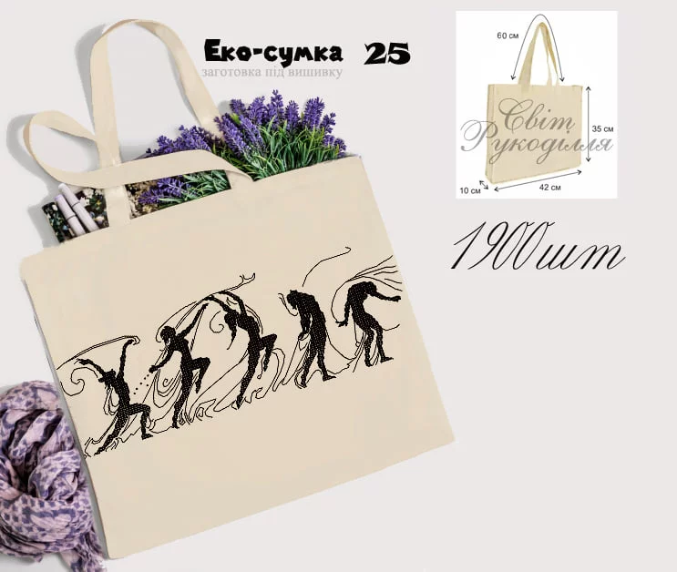 Пошита заготовка під вишивку еко-торбинки. Матеріал домоткане-льон. Розміри заготовки 42х35х10 см. Довжина ручки 60 см