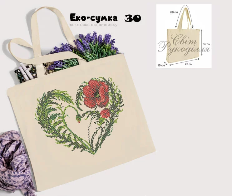 Пошита заготовка під вишивку еко-торбинки. Матеріал домоткане-льон. Розміри заготовки 42х35х10 см. Довжина ручки 60 см