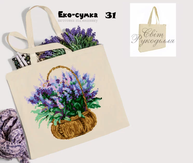 Пошита заготовка під вишивку еко-торбинки. Матеріал домоткане-льон. Розміри заготовки 42х35х10 см. Довжина ручки 60 см