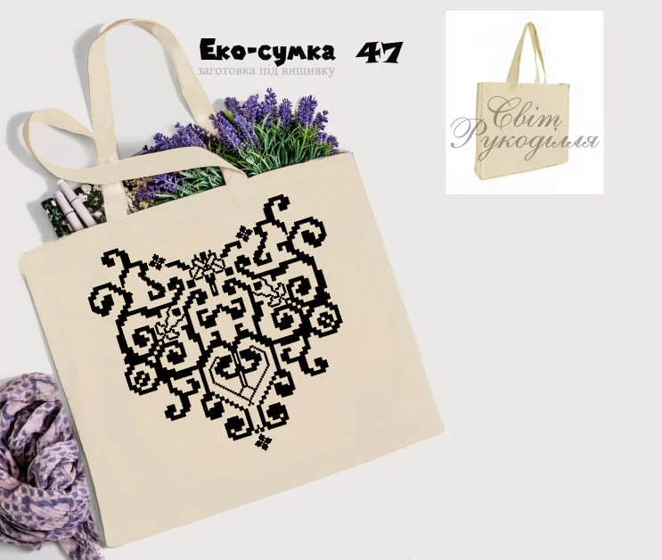 Пошита заготовка під вишивку еко-торбинки. Матеріал домоткане-льон. Розміри заготовки 42х35х10 см. Довжина ручки 60 см