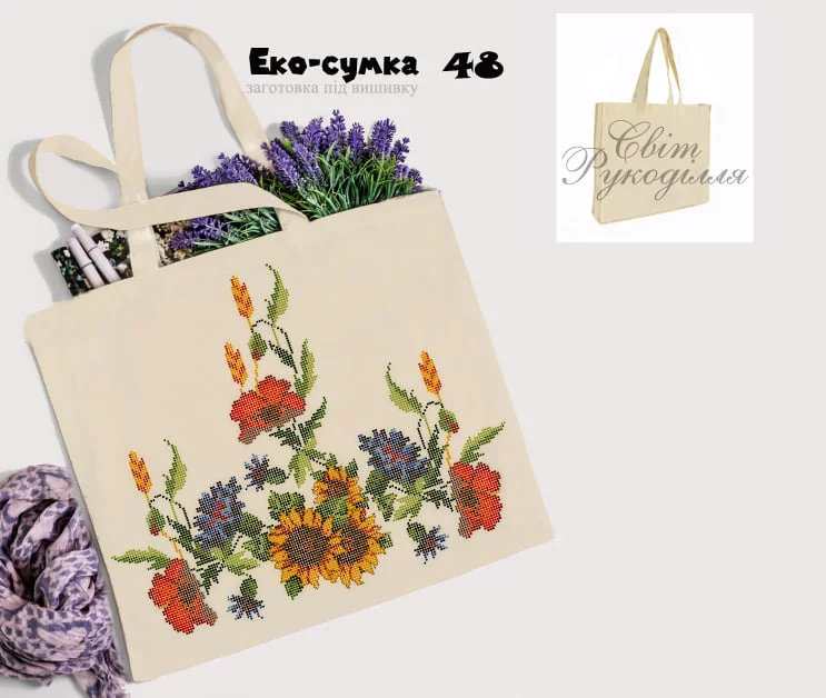 Пошита заготовка під вишивку еко-торбинки. Матеріал домоткане-льон. Розміри заготовки 42х35х10 см. Довжина ручки 60 см