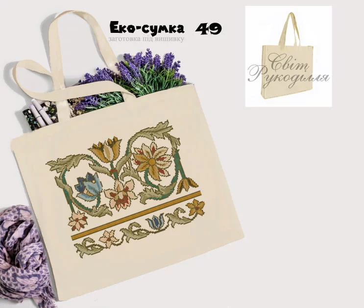 Пошита заготовка під вишивку еко-торбинки. Матеріал домоткане-льон. Розміри заготовки 42х35х10 см. Довжина ручки 60 см