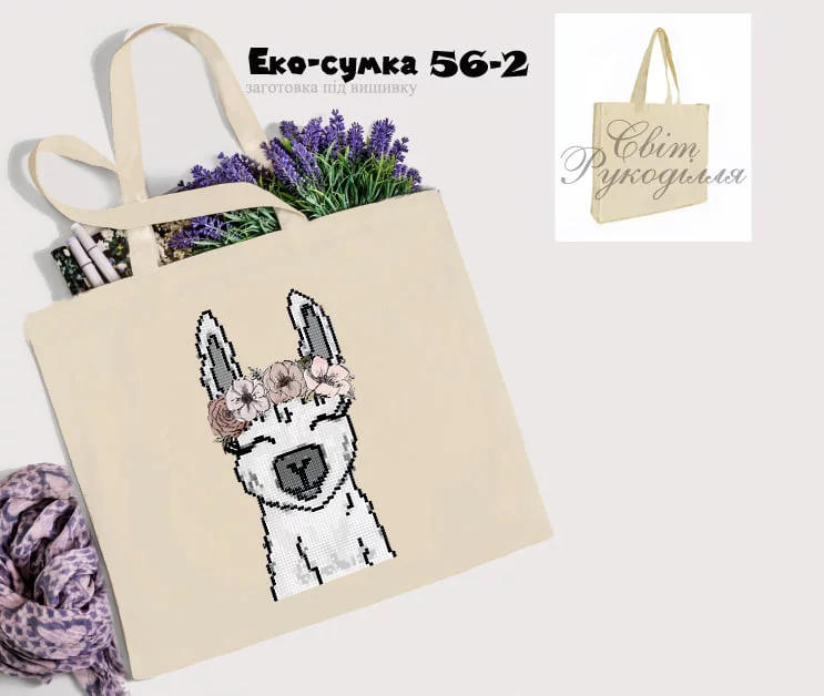 Пошита заготовка під вишивку еко-торбинки. Матеріал домоткане-льон. Розміри заготовки 42х35х10 см. Довжина ручки 60 см