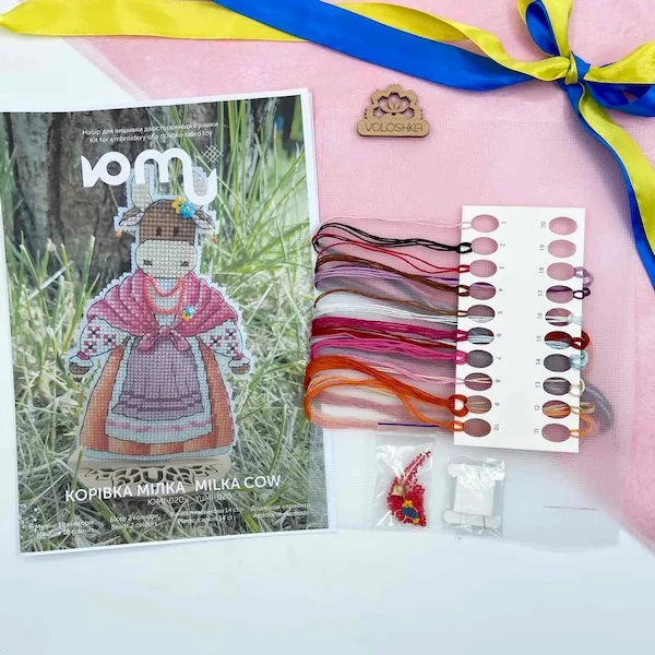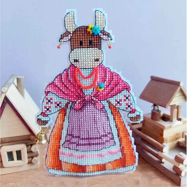 Набір для вишивки двосторонньої іграшки у змішаній техніці на пластиковій канві.