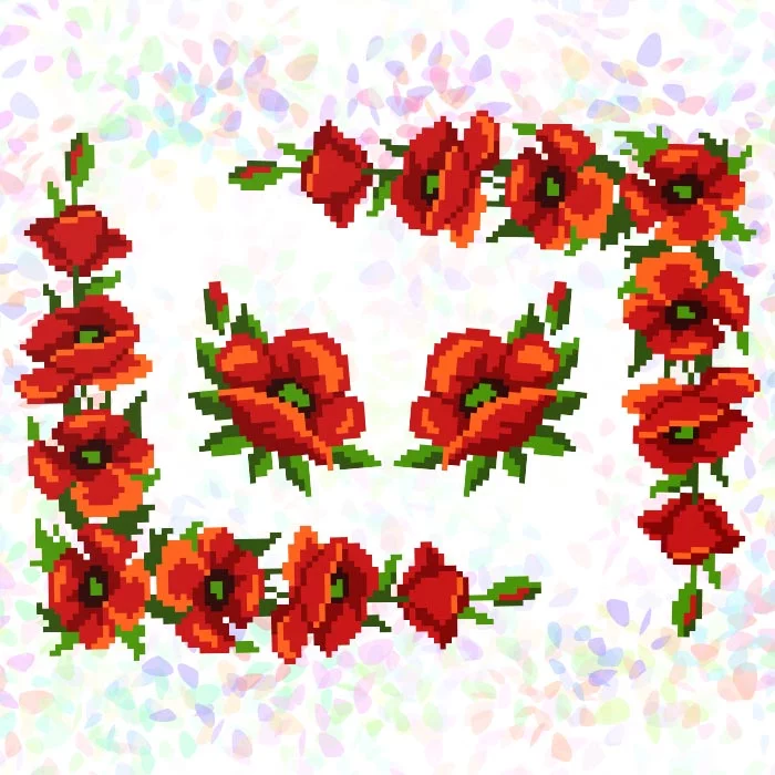 Виріжте фрагмент, пришийте його до блузки, сорочки, одягу, скатертини тощо, і вишивайте бісером 10/0 або нитками. Після вишивання промийте, вишивку під холодною водою - флізелін розчинеться, а вишивка лишиться. Розмір фрагментів під вишивку: 9х12 см (2 шт), 19х19 см (1 шт).