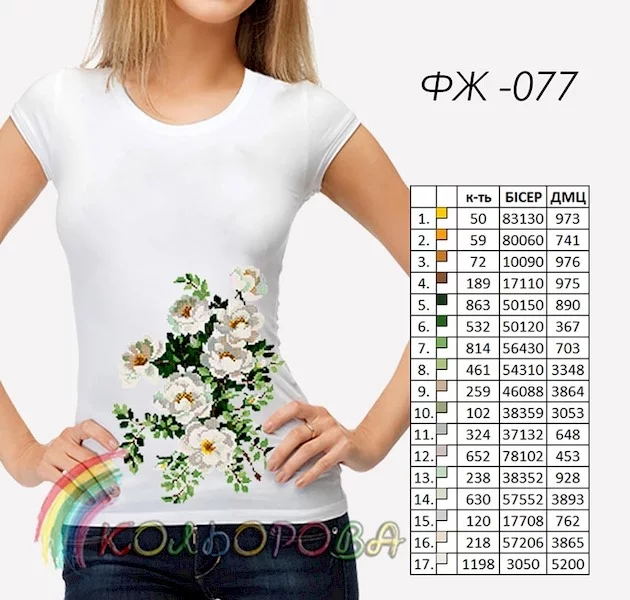 - титулка-ключ з рекомендованими кольорами бісеру Preciosa або муліне DMC та їх кількістю.