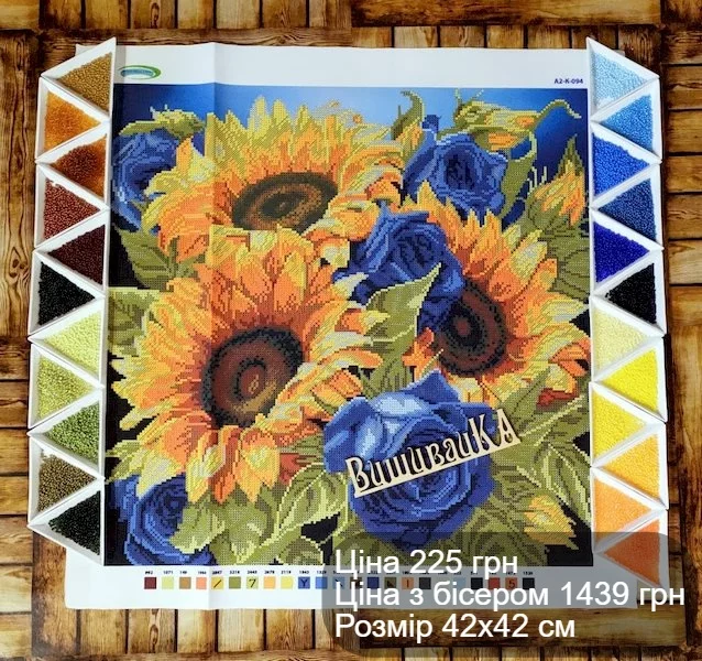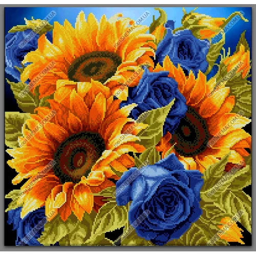 Схема під вишивку бісером. Друк на габардині. Розмір 42х42 см. До схеми додається список рекомендованих кольорів бісеру.