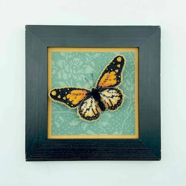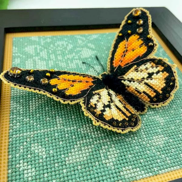 В наборі 2 відрізи пластикової канви. Дві частини вишиваються окремо. Вишитий метелик вирізається та пришивається вже до вишитої основи. Як варіант метелика можна "посадити" на липучку, або на магніт.