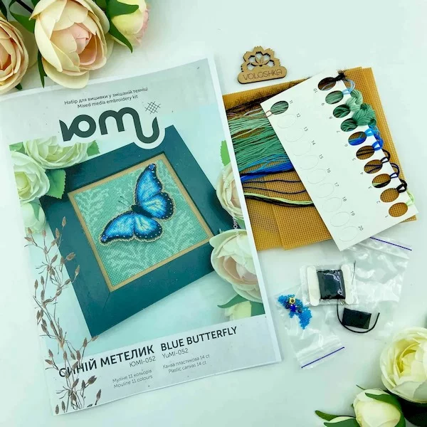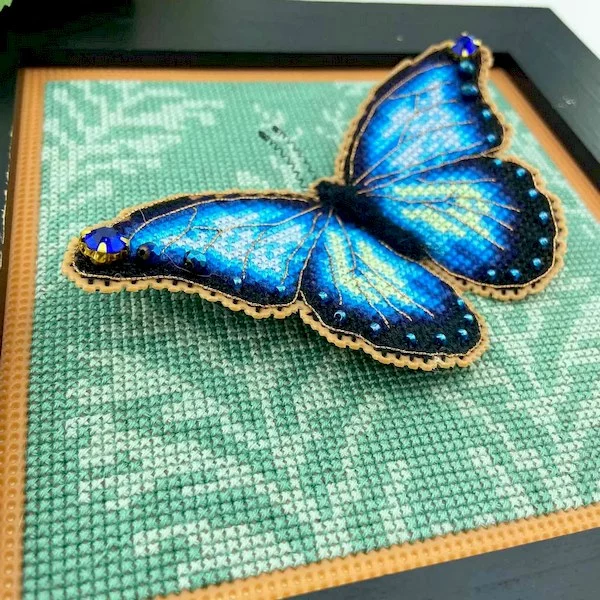 В наборі 2 відрізи пластикової канви. Дві частини вишиваються окремо. Вишитий метелик вирізається та пришивається вже до вишитої основи. Як варіант метелика можна "посадити" на липучку, або на магніт.