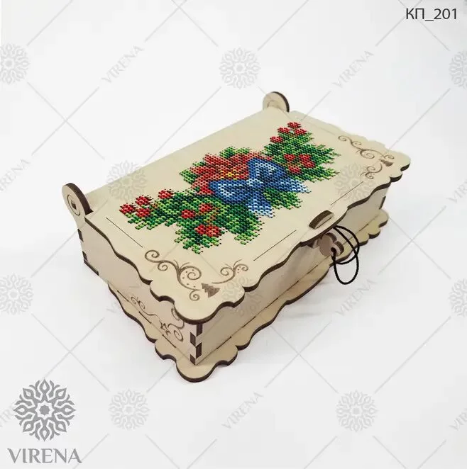 Кришка коробочки містить перфорацію для вишивки бісером.
