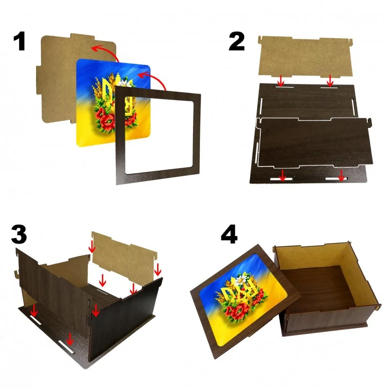 Розмір коробочки 16х16х7 см, розмір вишивки 14х14 см.
