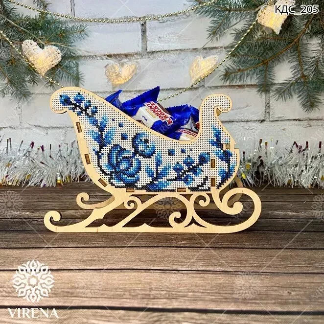 Набір з фанери для створення тематичного новорічного кошику для смаколиків, який має вишиватись бісером.