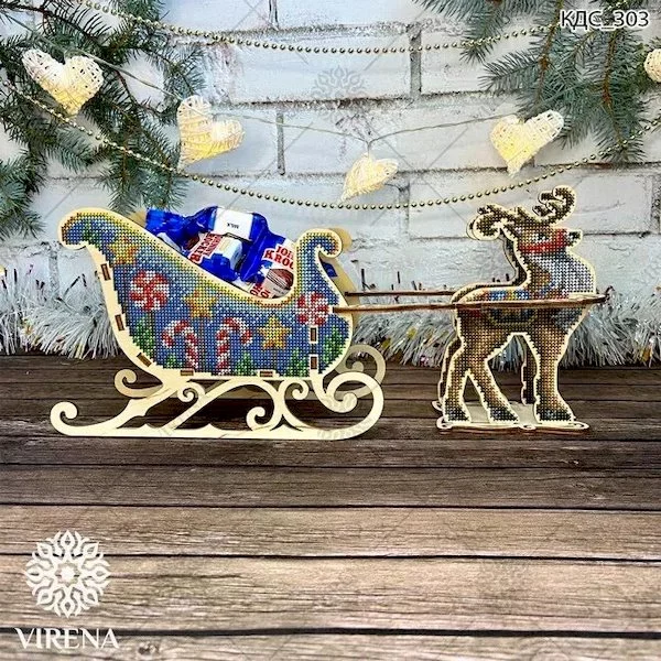 Набір з фанери для створення тематичного новорічного кошику для смаколиків, який має вишиватись бісером.