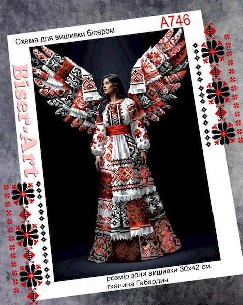 Схема під вишивку бісером. Друк на габардині. Розмір 30х42 см. До схеми додається список рекомендованих кольорів бісеру.