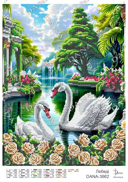 Схема під вишивку бісером. Друк на габарині. Розмір 36,5х27,5 см. До схеми додається список рекомендованих кольорів бісеру.
