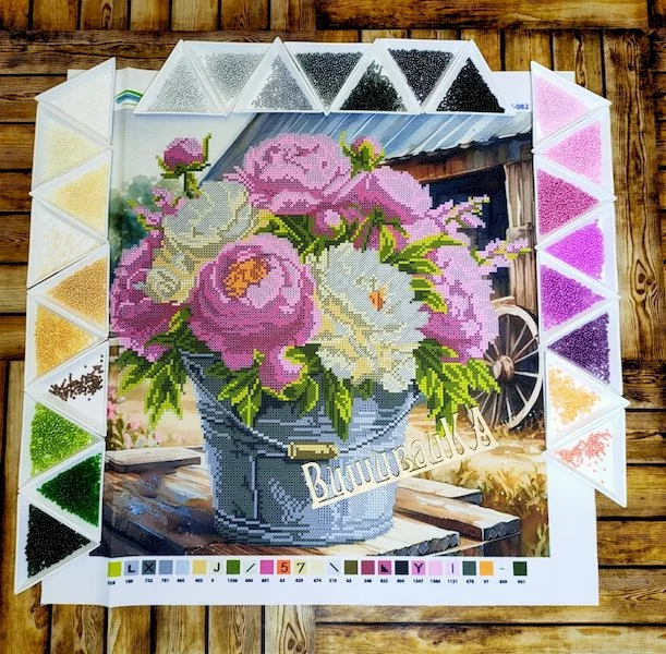 Схема під вишивку бісером. Друк на габардині. Розмір 35х35 см. До схеми додається список рекомендованих кольорів бісеру.