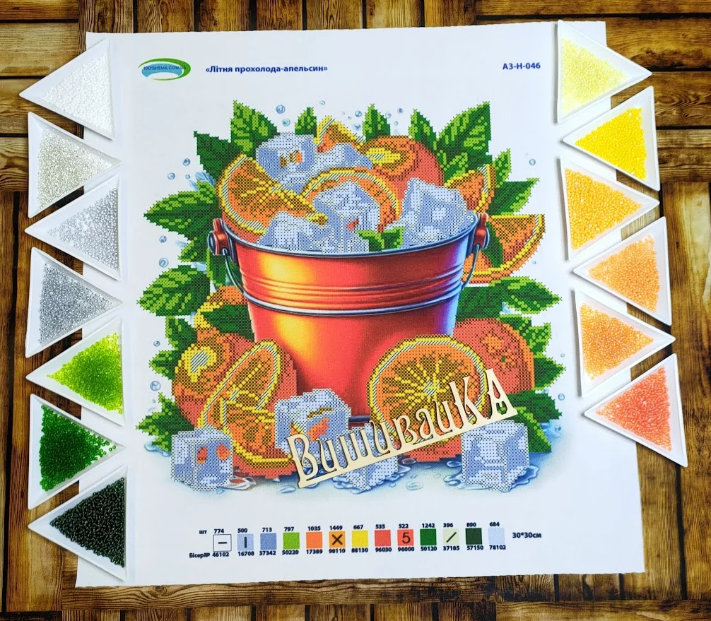 Схема під вишивку бісером. Друк на габардині. Розмір 30х30 см. До схеми додається список рекомендованих кольорів бісеру.