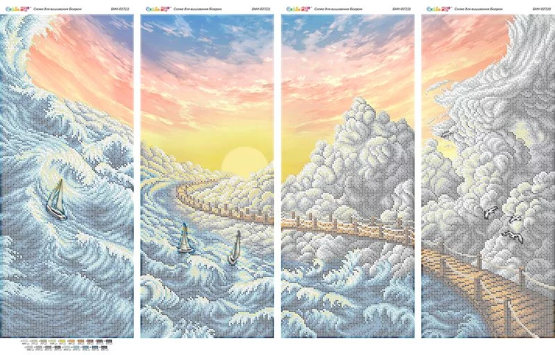 Модульна картина під вишивку бісером. Друк на габардині. Заготовка складається з чотирьох окремих схем розміром 19,6х47,5 см кожна.