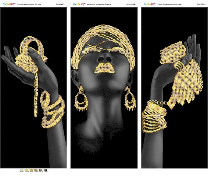Модульна картина під вишивку бісером. Друк на габардині. Заготовка складається з трьох окремих схем розміром 19,6х47,5 см кожна.
